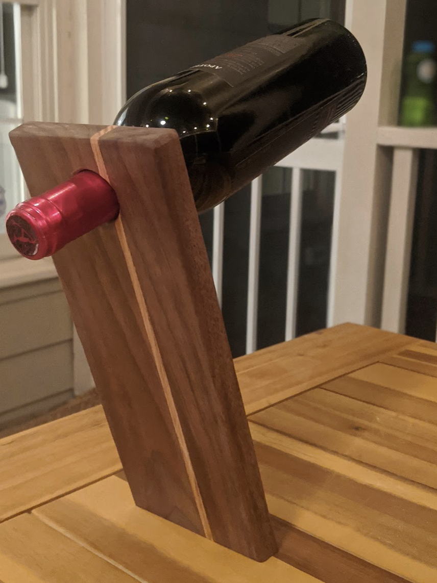Decorative wine bottle stand; maple and black walnut