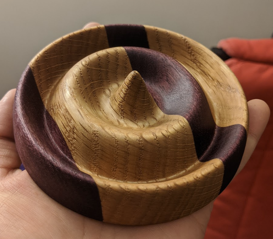 Jewelry dish for my wife; red oak and purpleheart, CNC