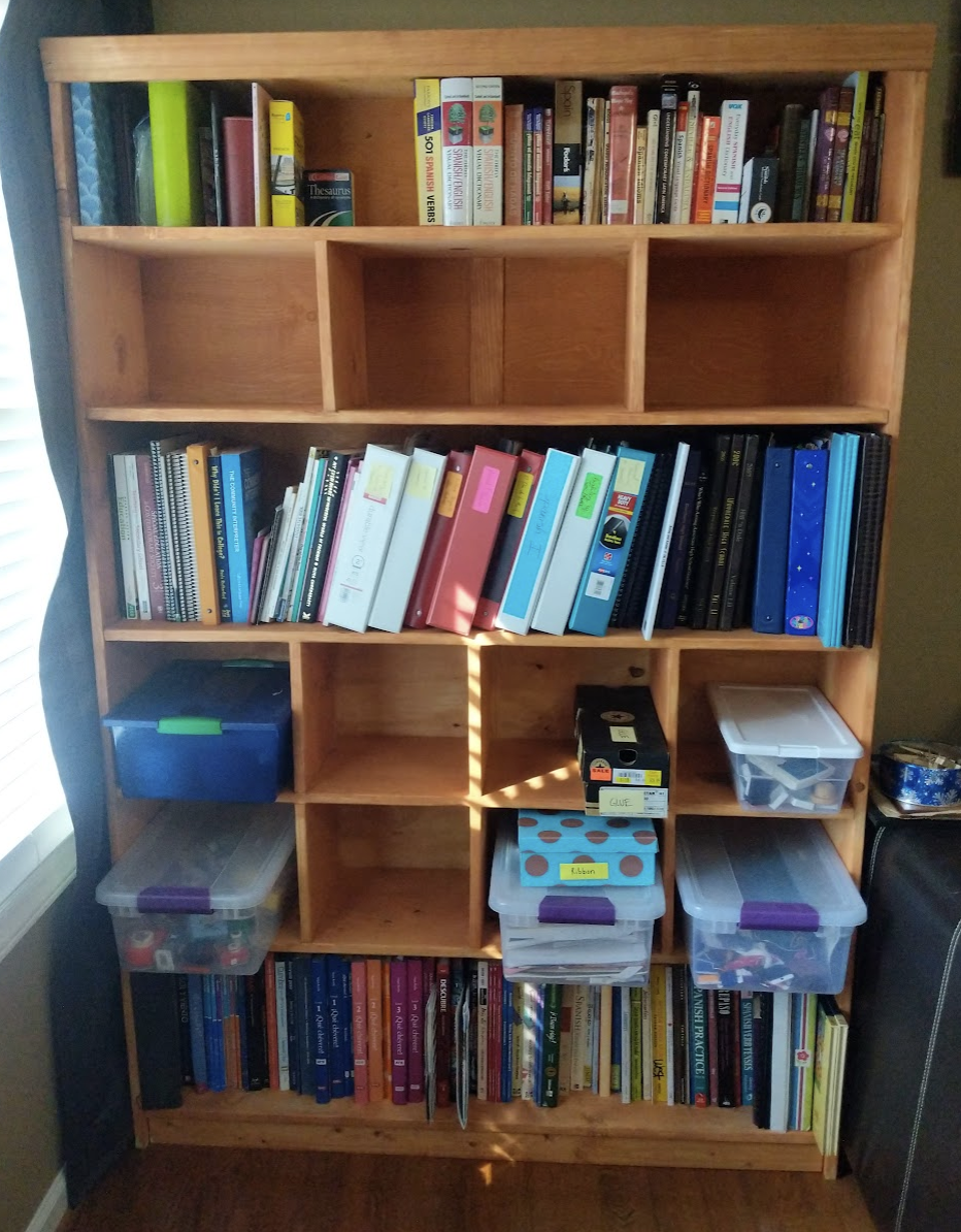 Big bookshelf for binders, textbooks, and craft supplies, for my wife; southern yellow pine