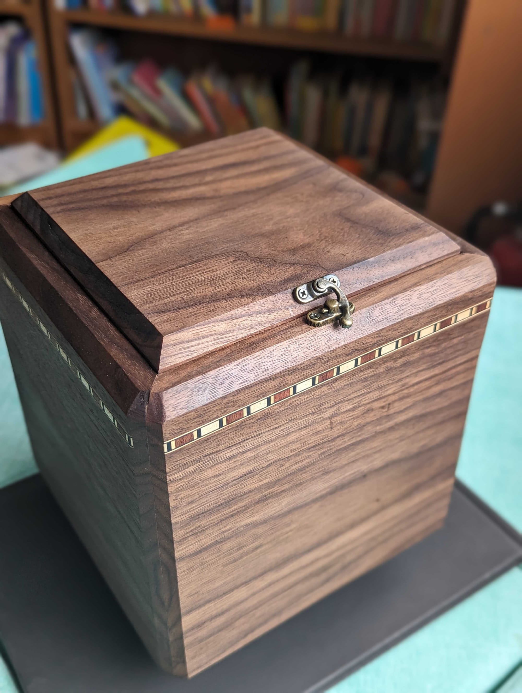 My dad's urn; black walnut with maple inlay